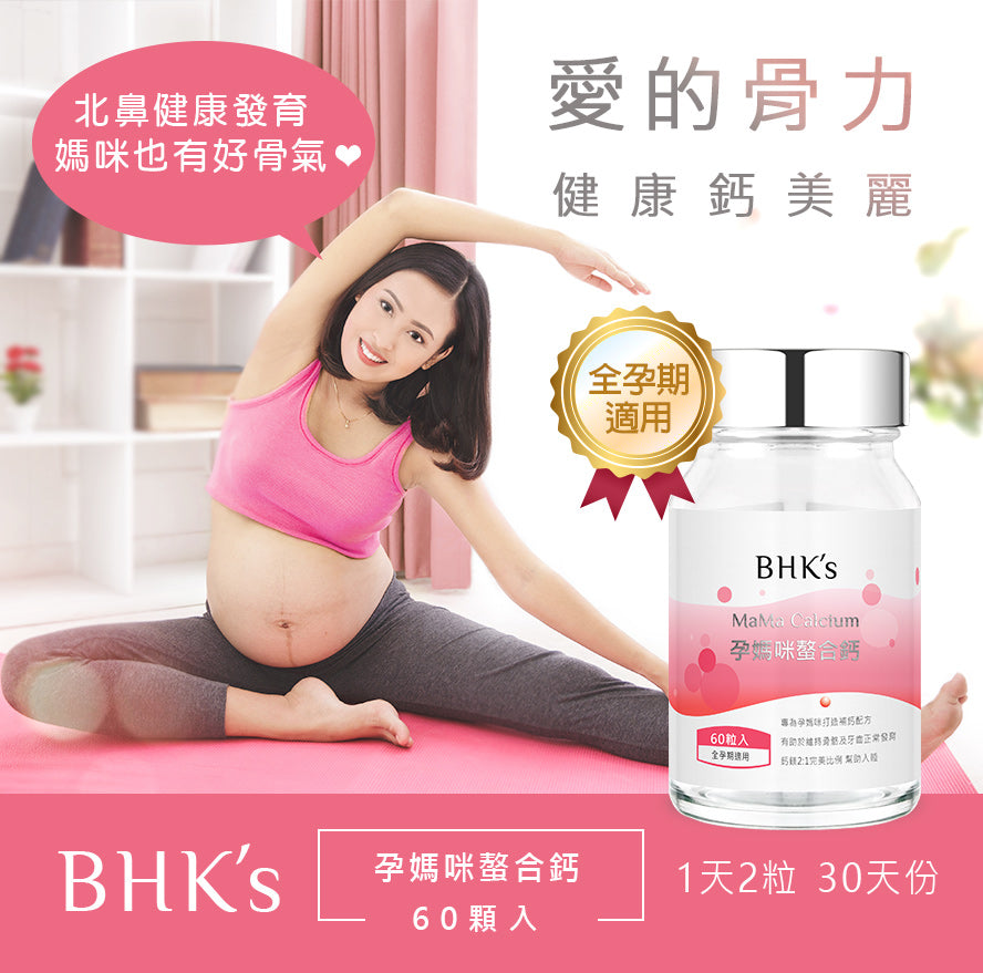 BHK's專為孕媽咪量身調配獨家複方配方,經實驗證明高吸收率的螯合鈣,搭配2:1完美比例的鈣鎂,對孕媽咪的營養才能達到真正的補給。