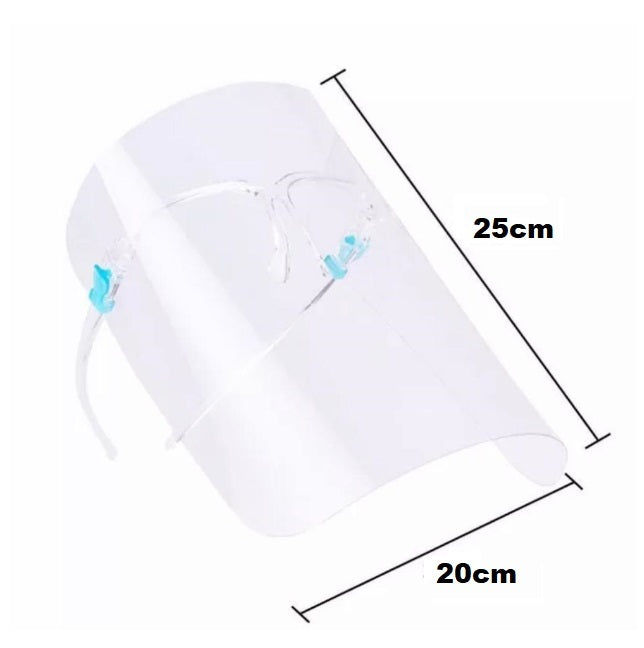 Face shield measures 24.5cm (length) x 19.5cm (height)